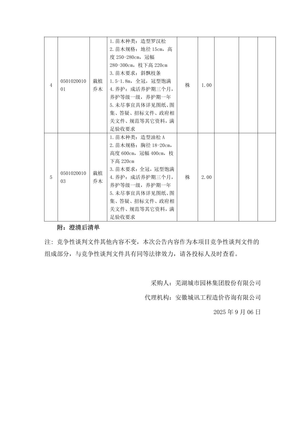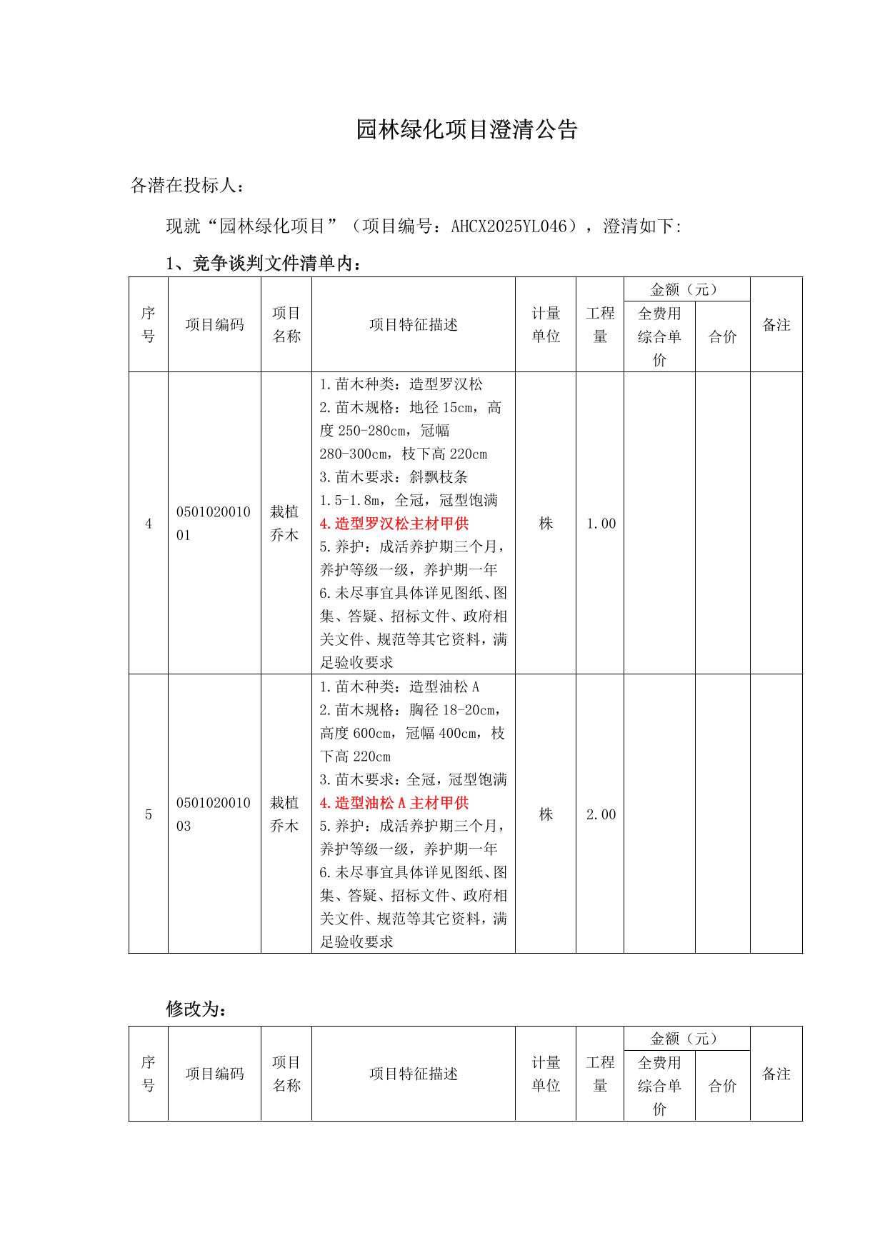澄清公告-園林綠化項目
