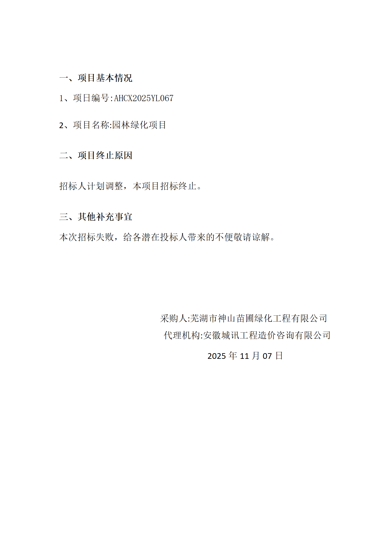 園林綠化項目終止公告