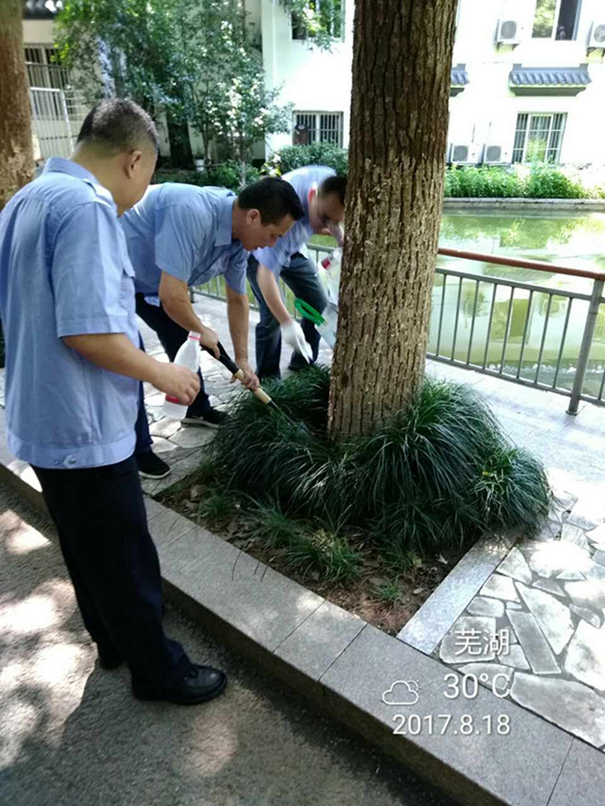 白蟻防治所工作人員到達現場(chǎng)后,告訴大家,近期受天氣影響,白蟻活動(dòng)頻繁,必須立即對白蟻進(jìn)行施藥處理,施藥后,保潔及時(shí)對地面殘留的藥物進(jìn)行沖洗。隨后,白蟻防治所工作人員檢查了公園其它地方,發(fā)現了有少量白蟻,于是工作人員立即在樹(shù)根下埋誘餌包進(jìn)行白蟻防治,并表示9月份將對公園白蟻防治情況進(jìn)行復查。