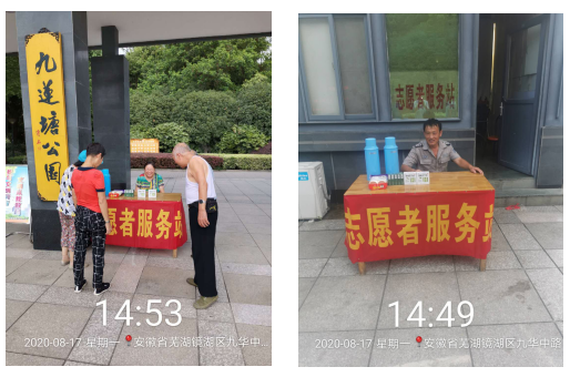 連日高溫,室外烈日高照、酷暑難耐,為保障市民的出行健康,營(yíng)造“服務(wù)他人、奉獻社會(huì )”的良好風(fēng)尚,藍綠物業(yè)公司在鏡湖公園和九蓮塘公園設置了志愿者服務(wù)站,提供仁丹、風(fēng)油精等防暑降溫用品和飲用水,有需要的市民游客可以前往服務(wù)臺取用。同時(shí),高溫酷暑,藍綠公司建議市民游客合理安排出行時(shí)間,盡量避開(kāi)高溫時(shí)段,保障身體健康。