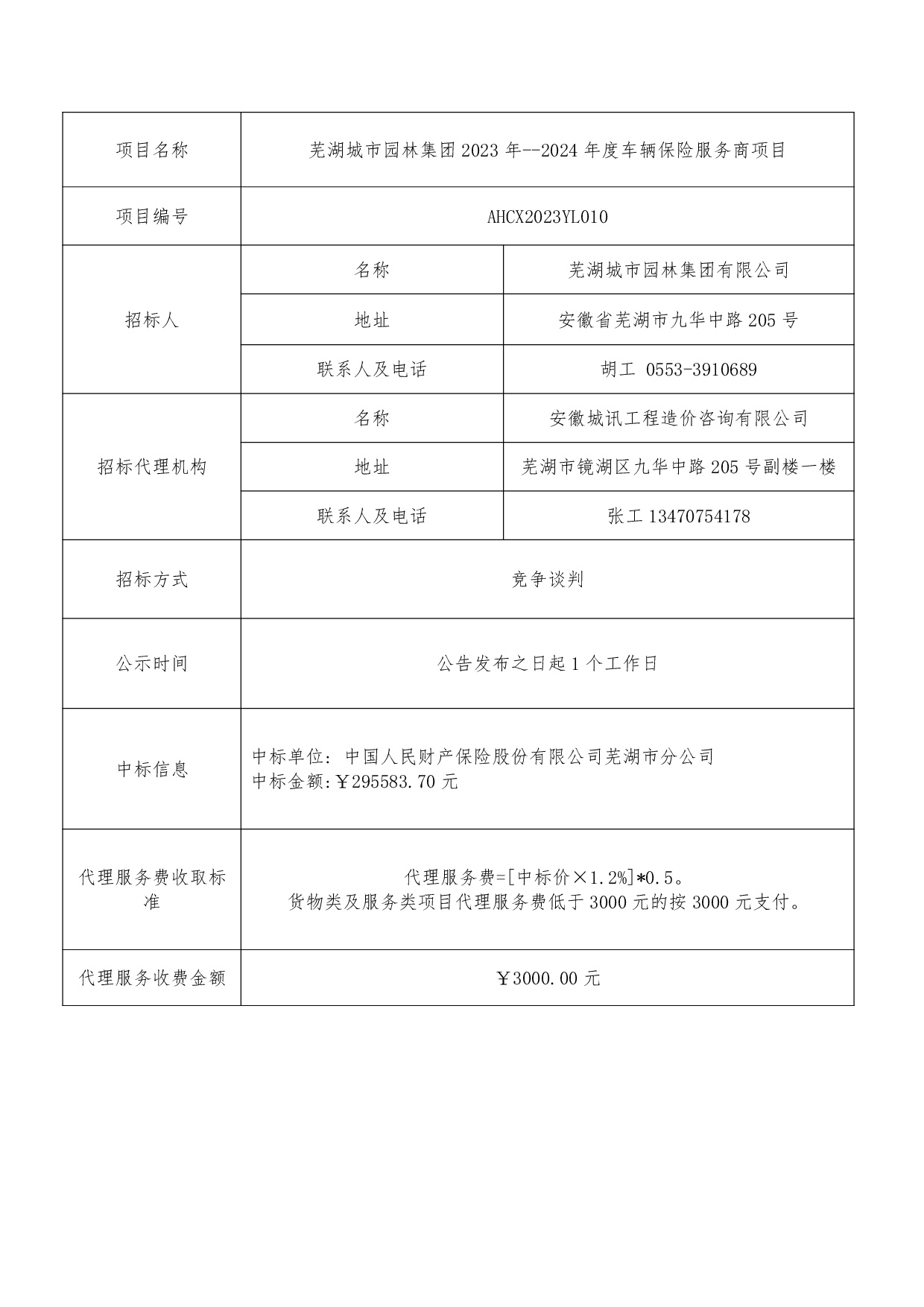蕪湖城市園林集團2023年--2024年度車(chē)輛保險服務(wù)商項目中標結果公示