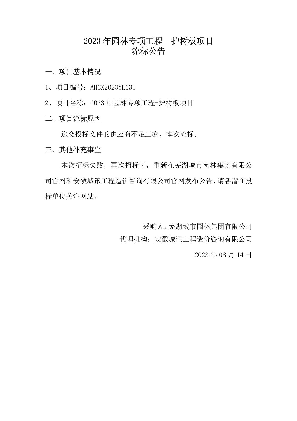 2023年園林專(zhuān)項工程—護樹(shù)板項目流標公告