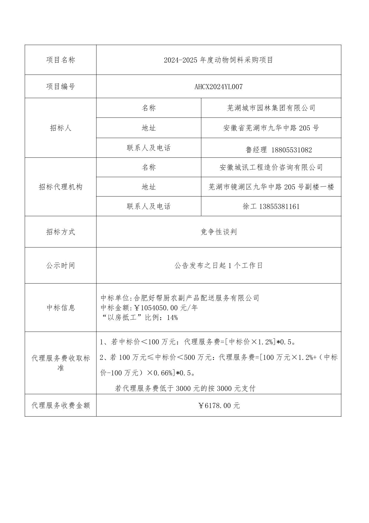 2024-2025年度動(dòng)物飼料采購項目成交結果公告