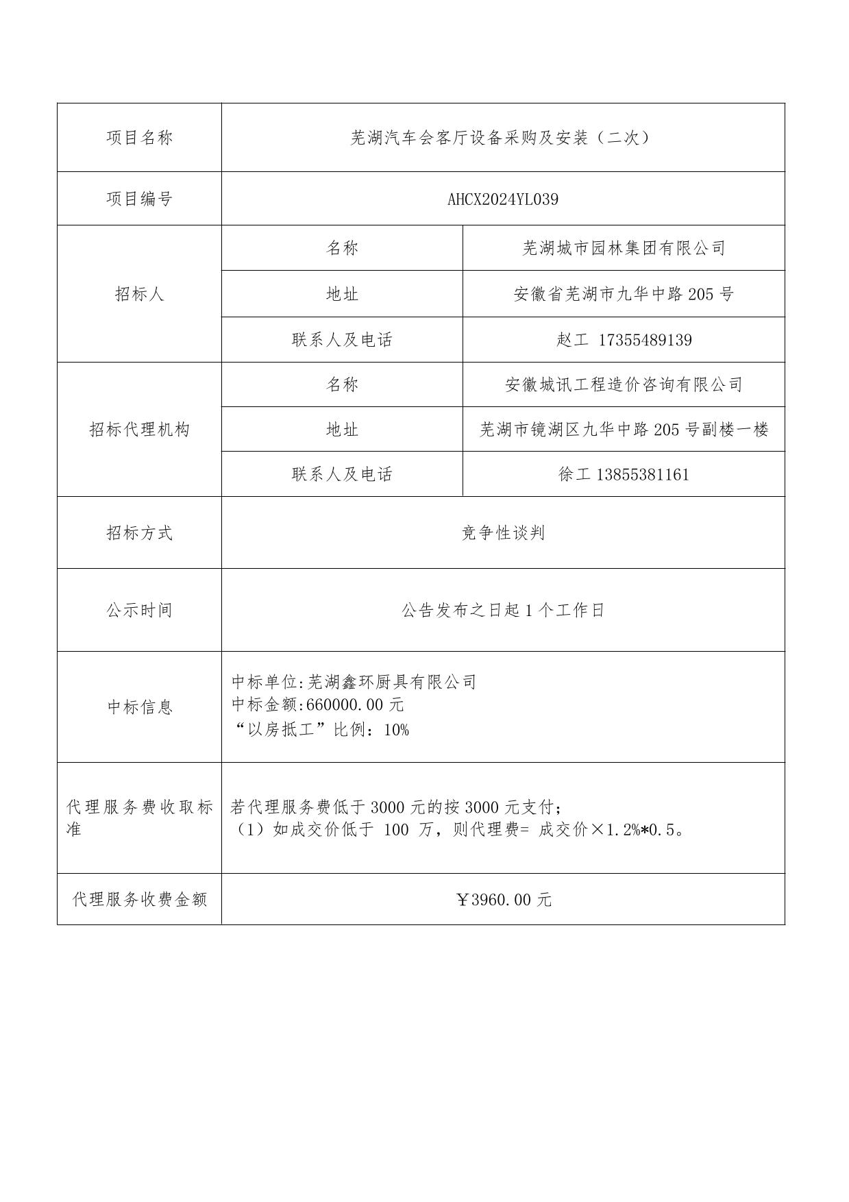 蕪湖汽車(chē)會(huì )客廳設備采購及安裝(二次)成交結果公示